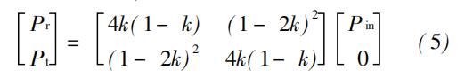 The solid and dashed lines in Figure 2 are the theoretical curves of R and T with k, respectively. Obviously, when the splitting ratio k is 0 or 1, R = 0, P r = 0, T = 1, P t = P in. In this case, the structure acts as a total transmission mirror; k ∃0. 147 or k ∃0. 853, that is, at the intersection of the two curves, R = T = 0.5, Pr = P t , at this time Structure